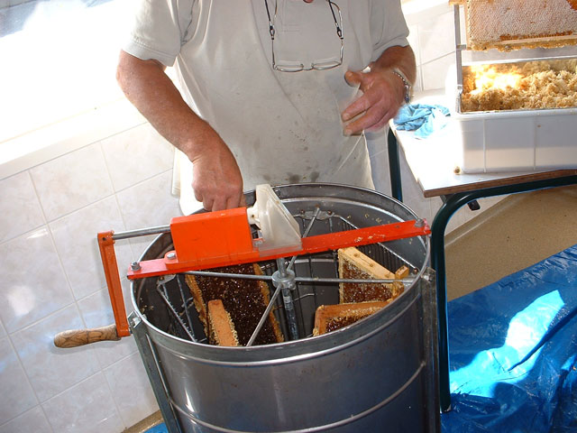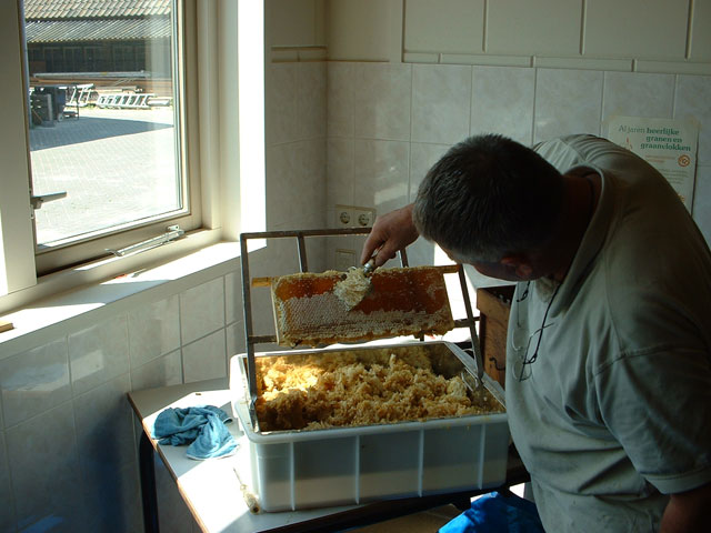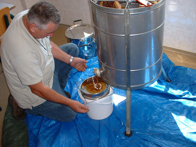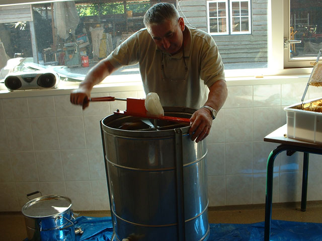 Na het slingeren kan de honing d.m.v. een kraantje worden afgetapt